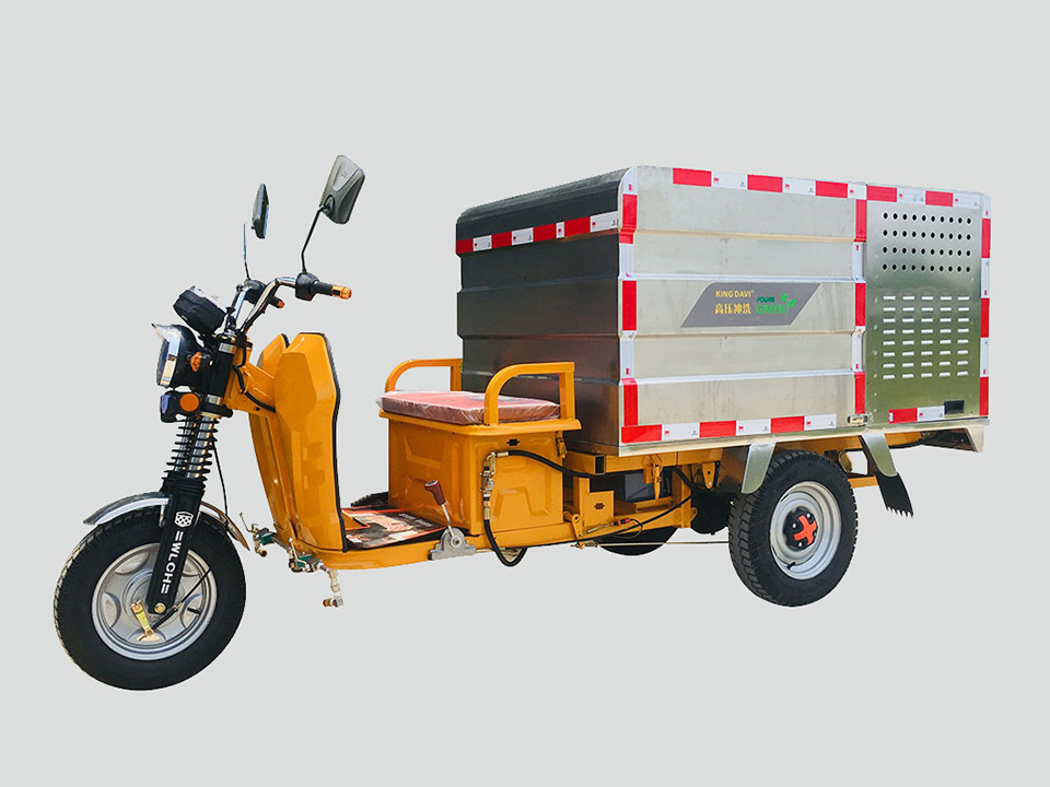 街头道路环卫使用电动三轮高压冲洗车主要是用于城市人行道、辅道、路沿石的快速冲洗和保洁,以及城市小广告清理、果皮箱和垃圾桶冲洗、地面污垢去除、地砖还原本色、公交站牌冲刷、下水井盖、公共厕所冲洗等。